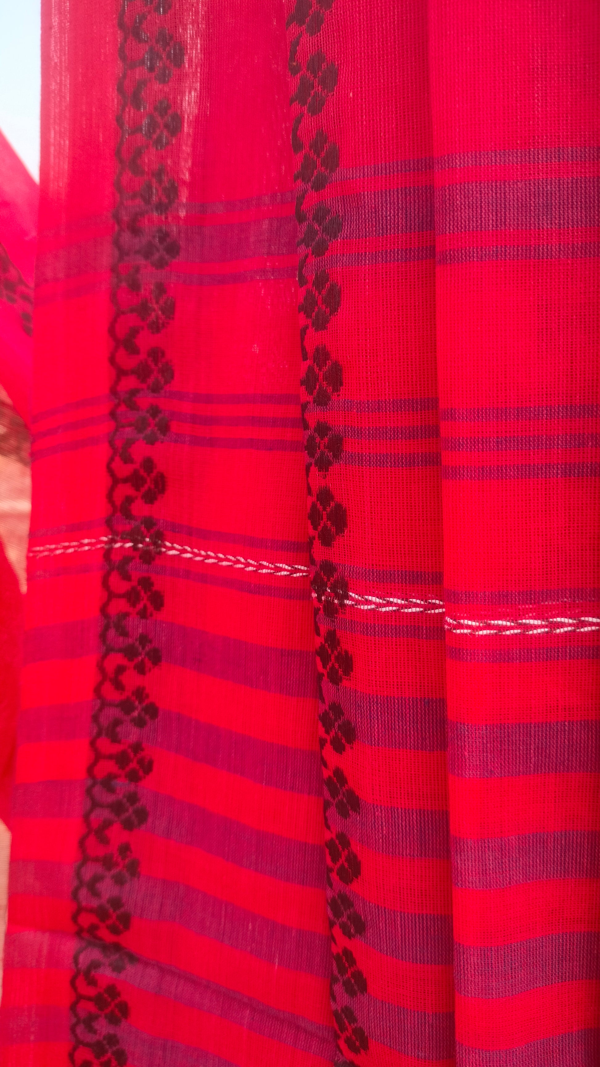 Ranga Abha – Red Dhonekhali Handloom Cotton Saree