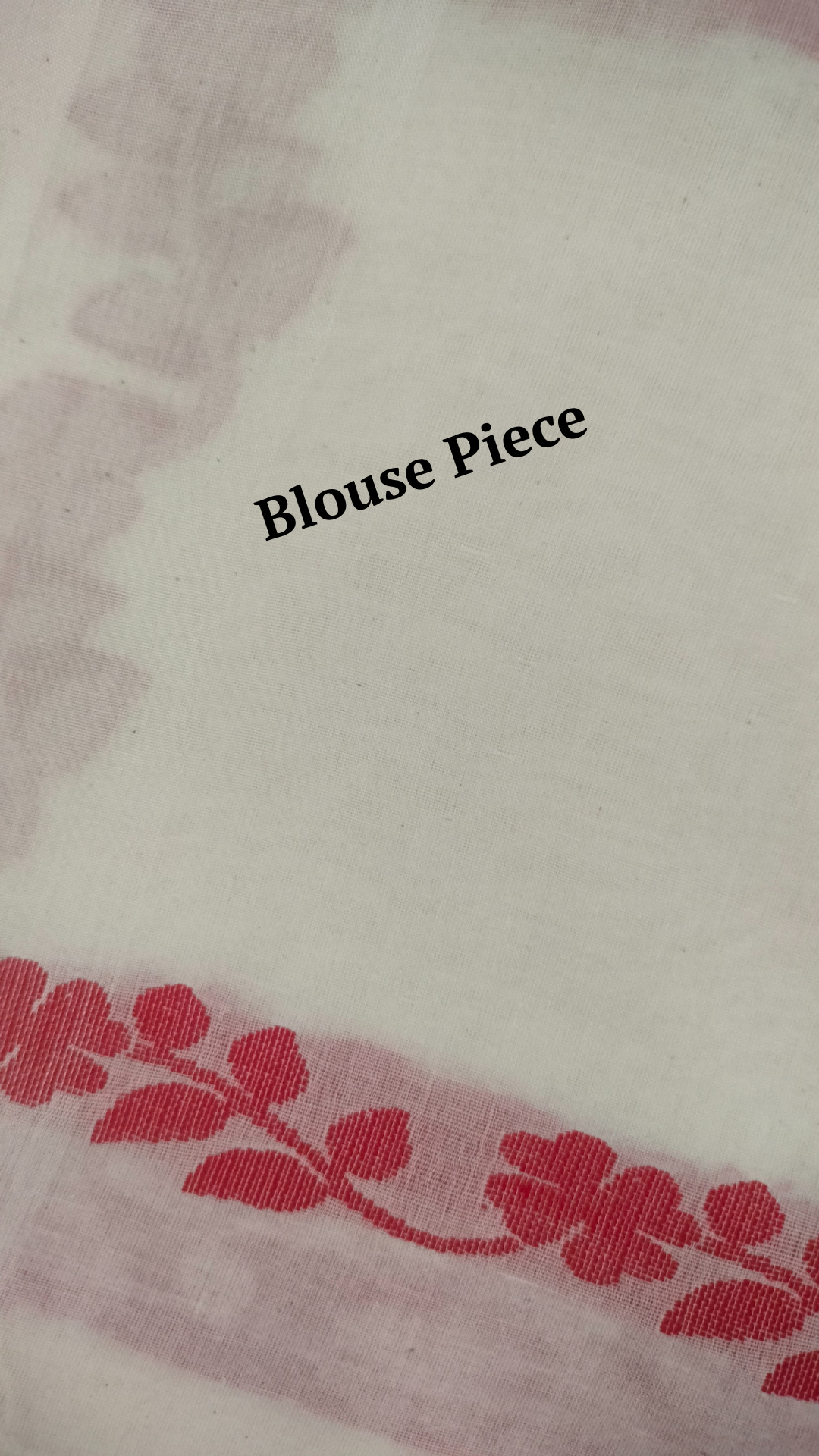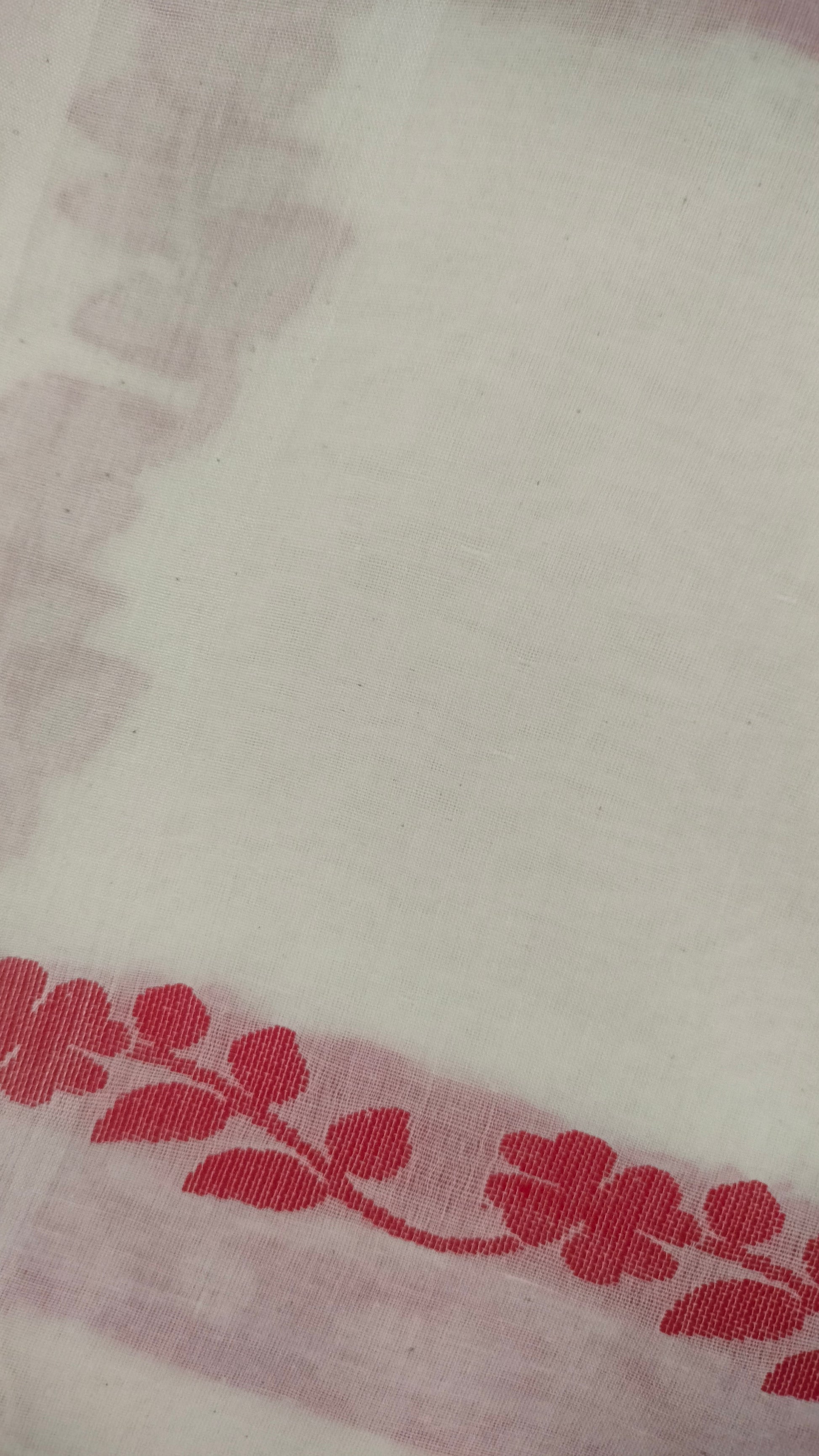 Ranga Fuler Chowa - White Handloom Cotton With Woven Red Motifs