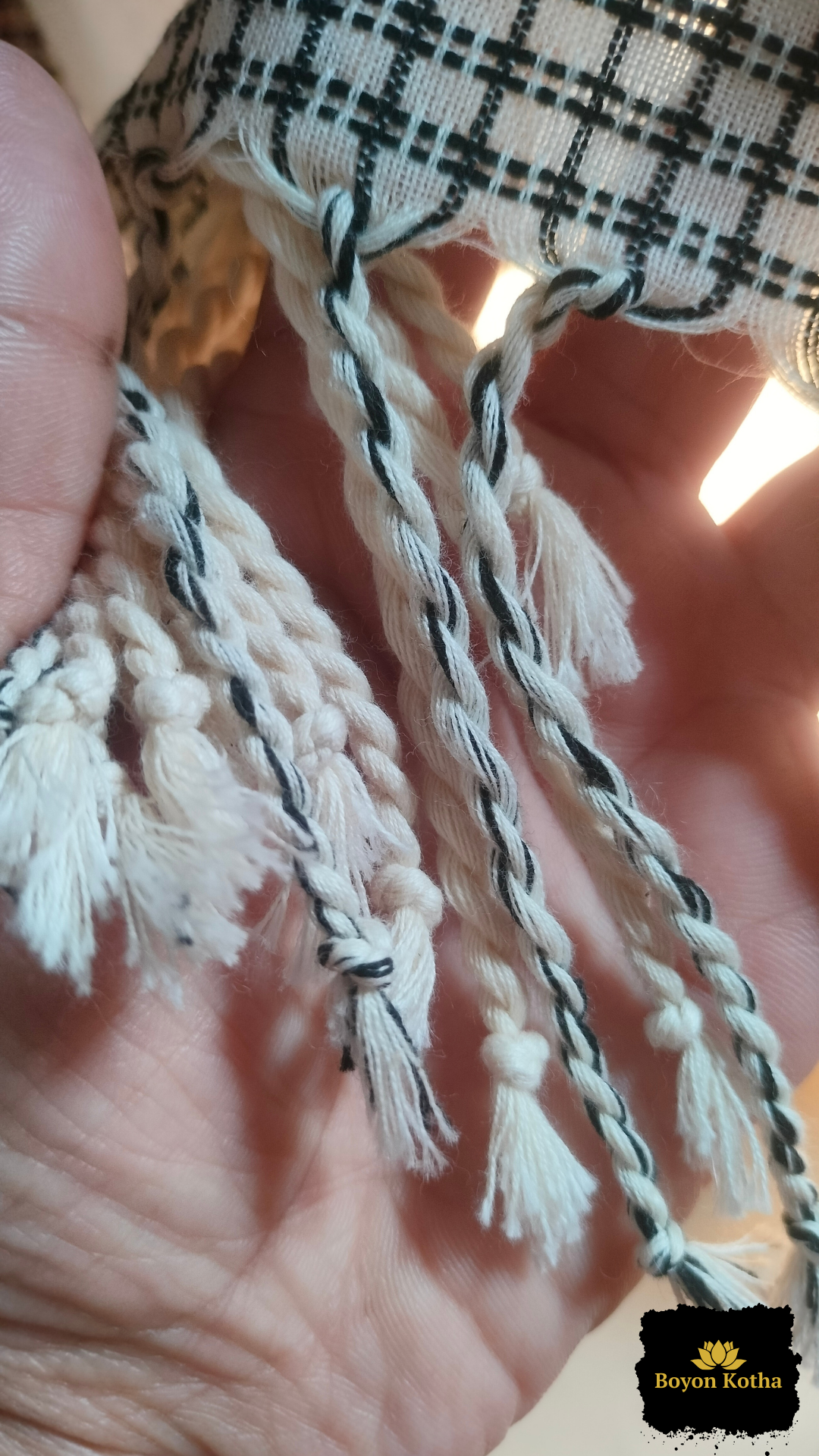 Pallu: Woven black checks with red edging and tassels