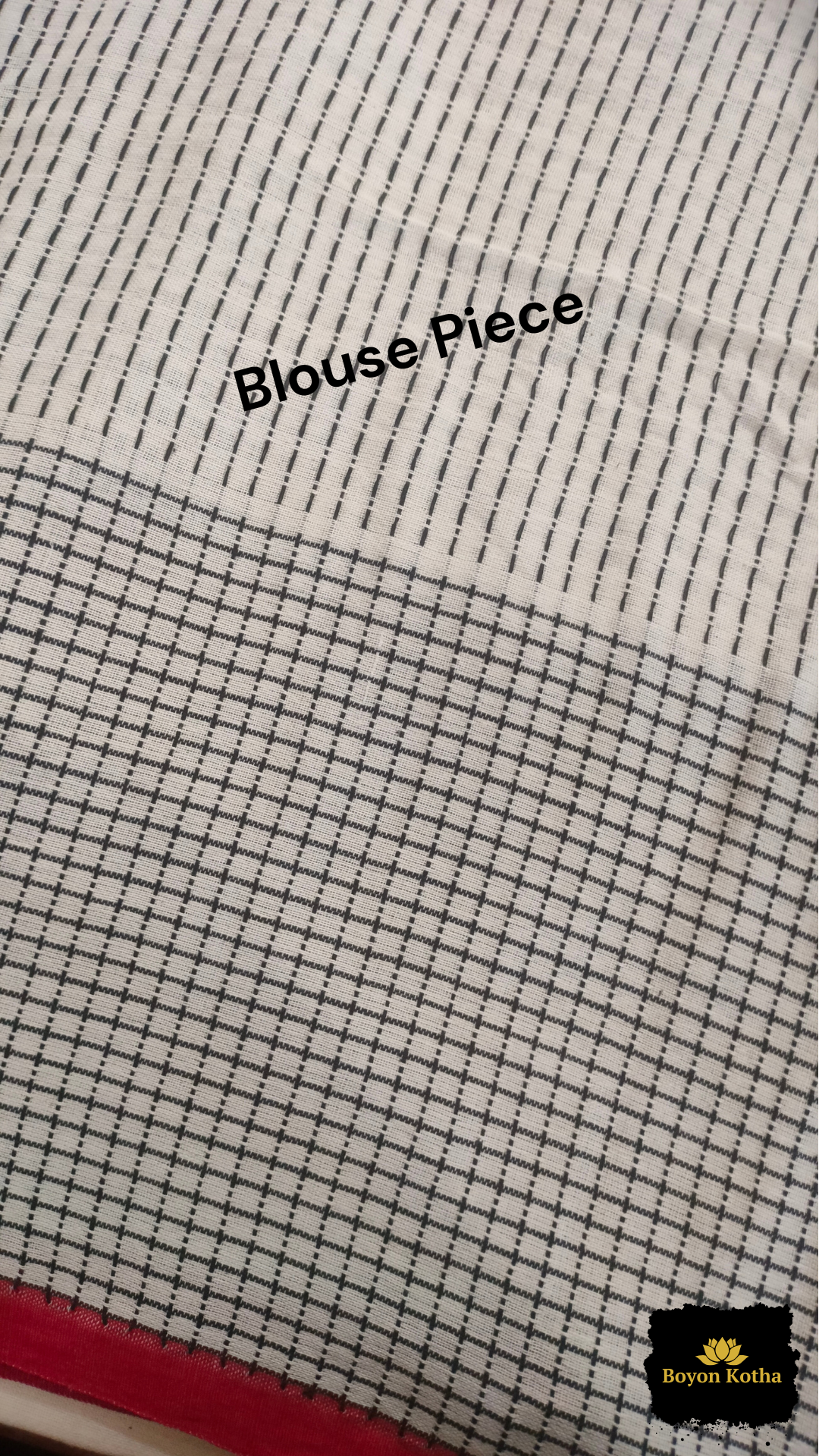 Woven on a handloom, the body of this beauty carries a soft white base, enriched by delicate woven black checks that add rhythm without overwhelming simplicity.